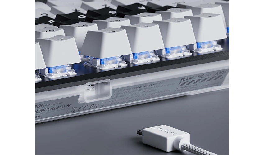 De Hall Effect switches in de Pulsar PCMK 2 HE TKL zijn in samenwerking met Gateron ontwikkeld. Het mooie aan een Hall Effect (magnetische) switch is dat deze volledige bewegingsdetectie biedt, waarbij het actuatiepunt van elke toets met een nauwkeurigheid van 0,1 mm wordt gedetecteerd. Je kunt het actuatiepunt naar wens aanpassen, wat sneller typen en een verbeterde game-ervaring mogelijk maakt.