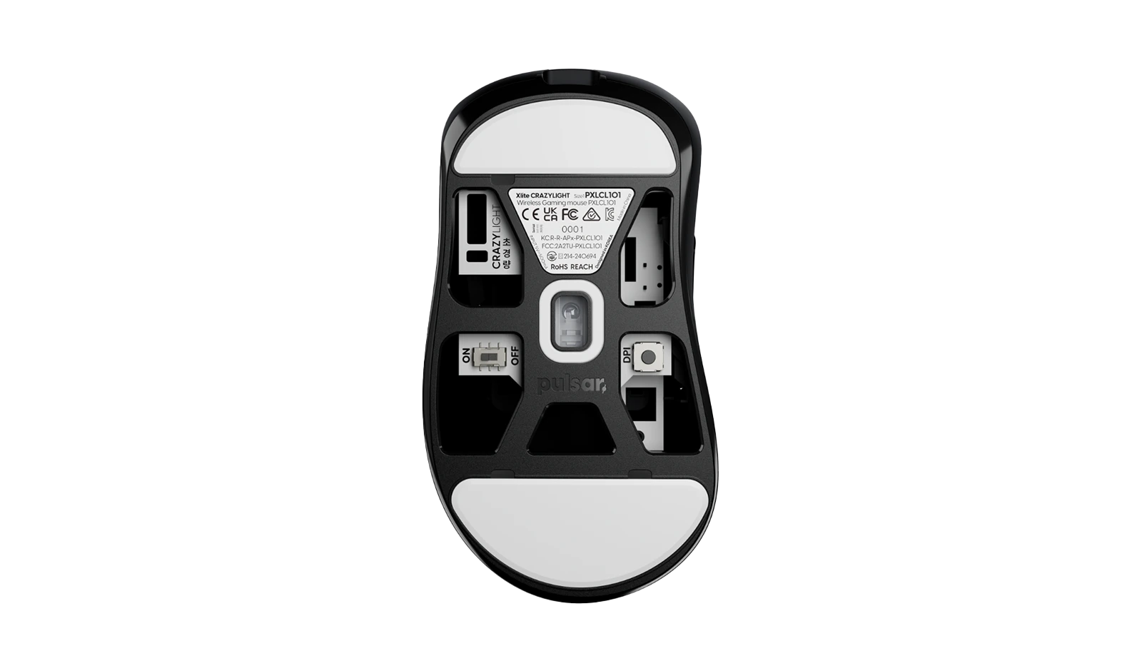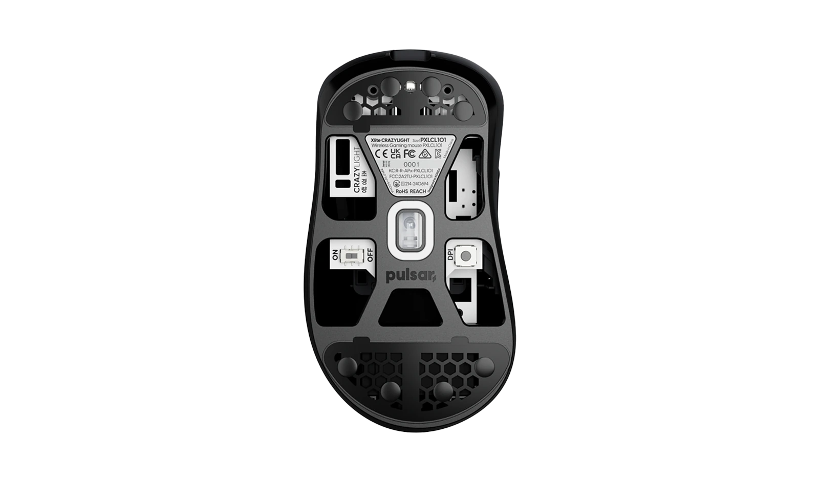 De Pulsar Xlite CrazyLight heeft een ultralichte behuizing van slechts ±41 gram (±43 gram met Regular Skates), met afmetingen van 63,4 mm breed, 115,6 mm lang en 40,7 mm hoog.